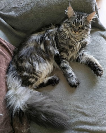Les paretns ont été analysés et sont sains de toute maladie propre au Maine Coon (HCM-A, SMA, PKDef), ainsi que de la FIV et la FeLV. ✅ Ils sont suivis par échographie des reins et du coeur et ne présentent aucune anomalie.✅